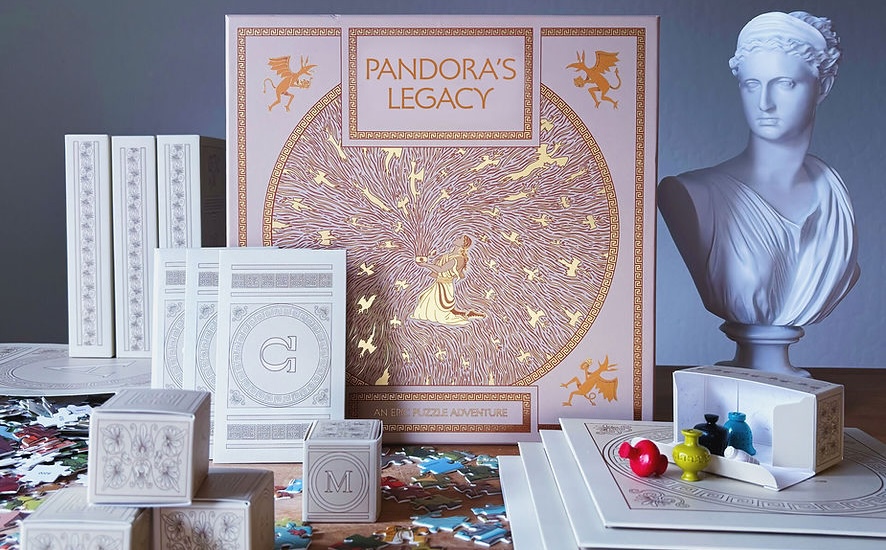 “Playing as Pandora, with the help (and hindrance) of your favorite Olympians, your mission is to corral the chaos you created when you opened the box. From TED Games, PANDORA’S LEGACY is an unforgettable experience that combines elements of jigsaw puzzles, escape rooms, puzzle hunts, and legacy board games into immersive, cooperative gameplay. Assemble pieces. Decode riddles. Uncover artifacts. Save the realm.”